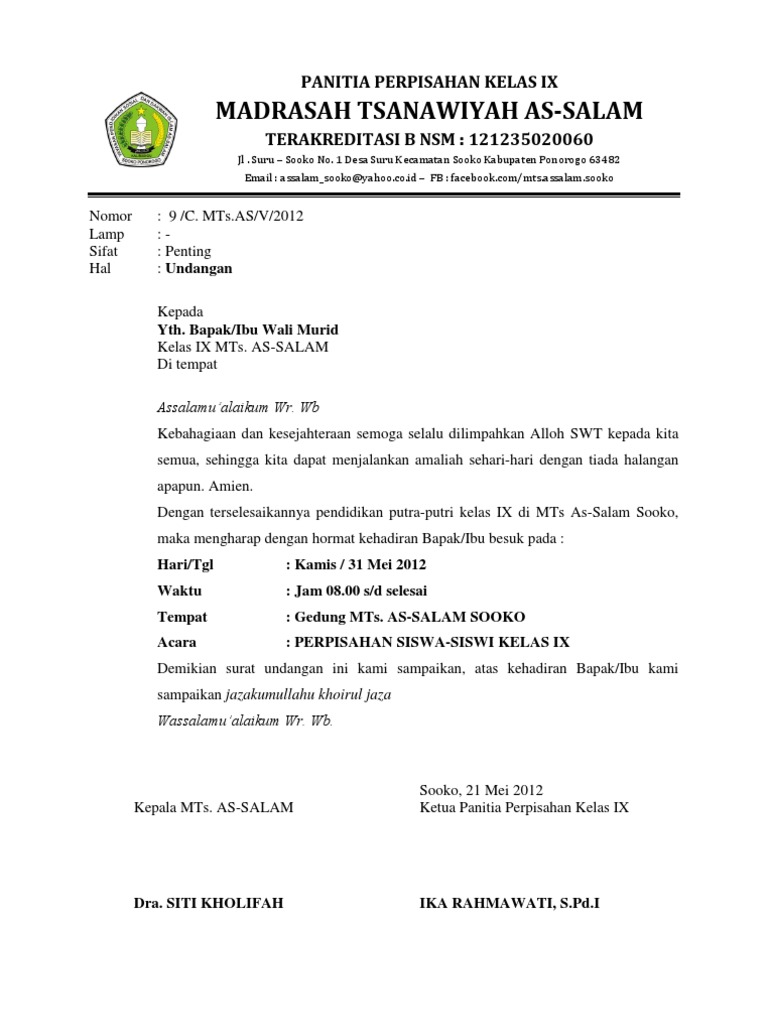 Contoh surat undangan rapat orang tua sederhana. Contoh surat pemberitahuan kegiatan resmi contoh surat. Contoh surat undangan perpisahan sekolah untuk orang tua wali murid kelas xii sma setelah ujian berikut ini adalah contoh tentang contoh surat undangan perpisahan sekolah untuk orang tua wali murid kelas xii sma setelah ujian. Jika ingin membuat surat undangan perpisahan kelas, silakan ganti redaksi kalimatnya dengan yang sesuai. Contoh surat resmi sekolah kesambet format 1131 x 1600 contoh surat dispensasi sekolah untuk mengikuti acara format 662 x 785 pixel download contoh surat edaran sekolah untuk wali murid format 768 x 1024 pixel download contoh surat dispensasi sekolah untuk mengikuti acara format 638 x 975 pixel download contoh surat permohonan kepala sekolah dan surat kuasa format 1149 x 1437 pixel download format.